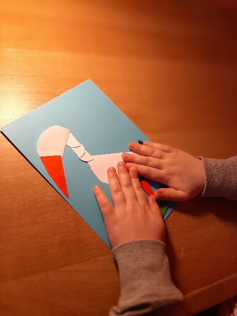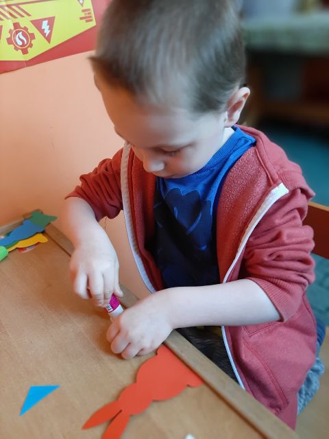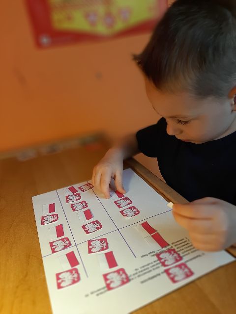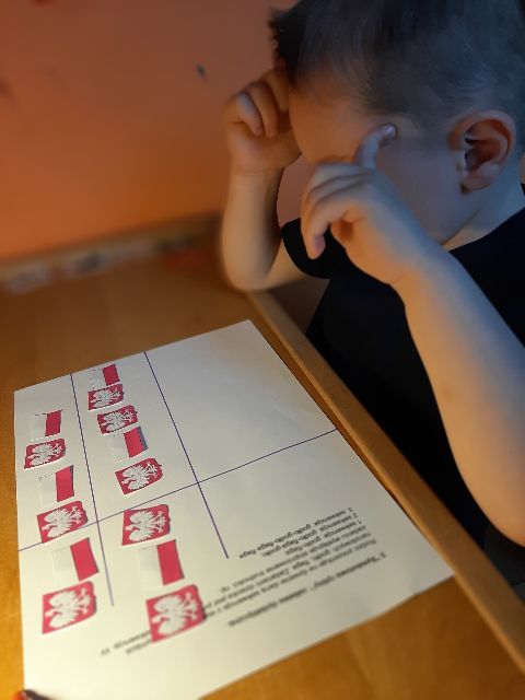 Następnie Jaś je nakleja na flagę, pamiętając, że kolor czerwony jest na dole