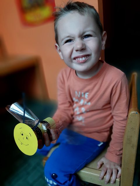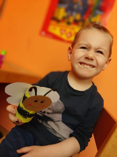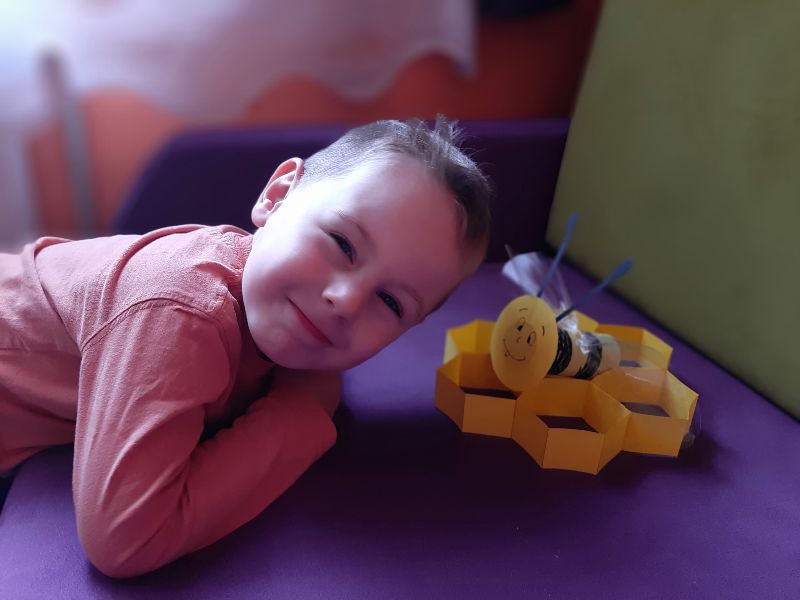 Jaś wykonał wesolutką pszczółkę na plastrze miodu