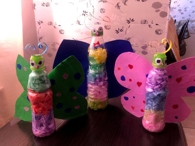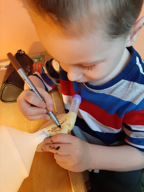 Recyklingowe działania plastyczne Jasia...Kto z Was wie, co powstanie?