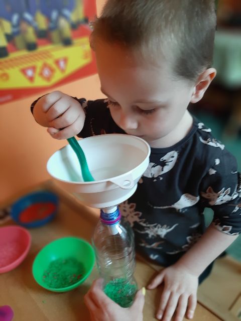 Jaś podczas zabaw z kolorowym ryżem