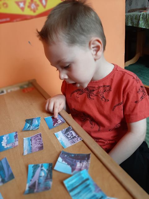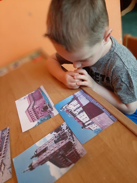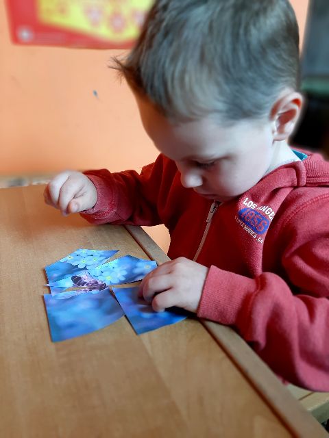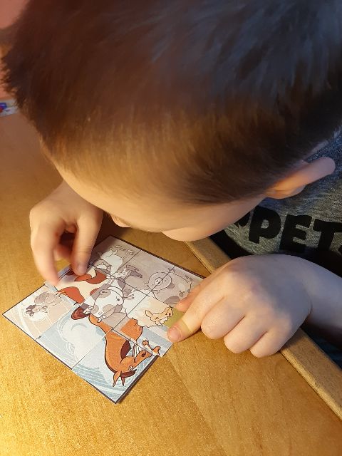Jaś układa puzzle obrazkowe
