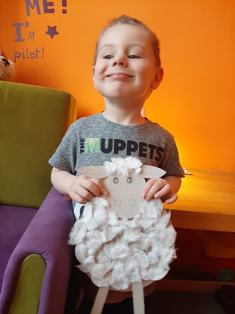 Owieczka wyklejana przez Jasia