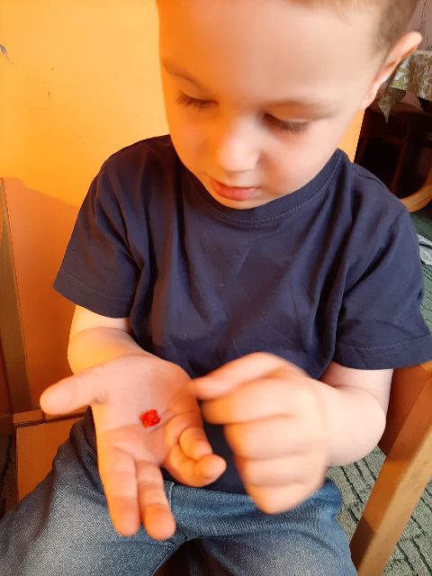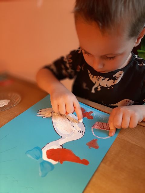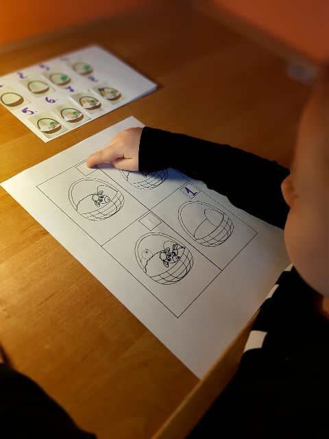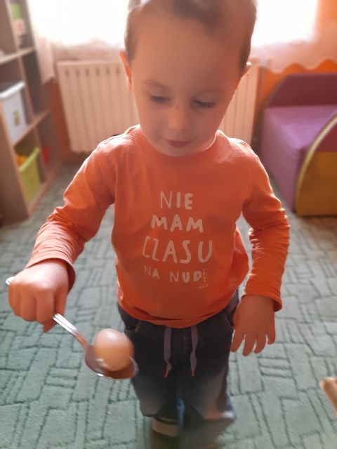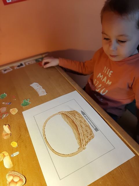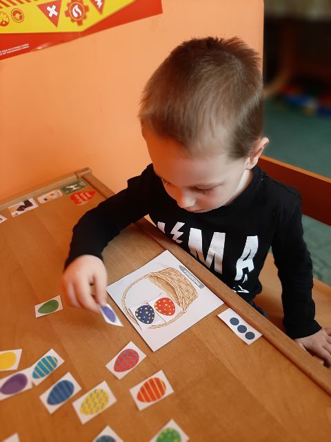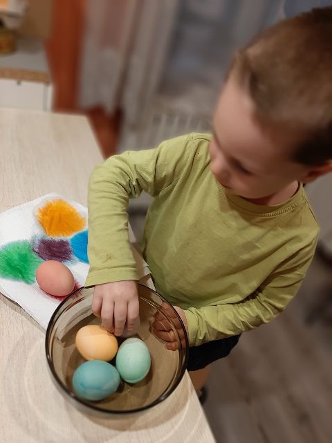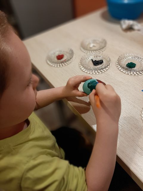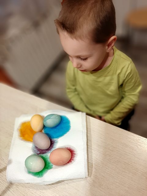 Jaś koloruje skorupki, żeby łatwiej było znaleźć pary