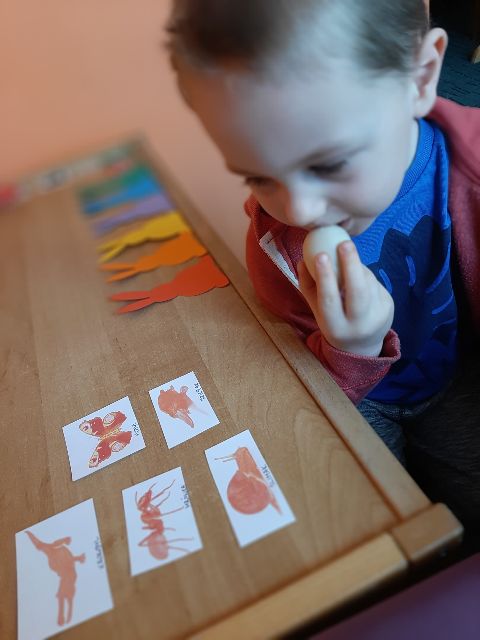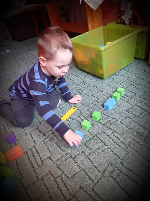 Jaś klasyfikuje przedmioty na dywanie