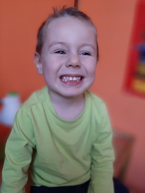 Jaś pokusił się o naśladowanie emocji dzieci z obrazków - jak myślicie w jakim nastroju jest Jaś na zdjęciu