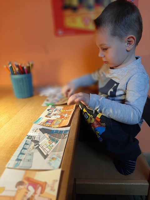 Jaś wie, jaka jest prawidłowa kolejność obrazków