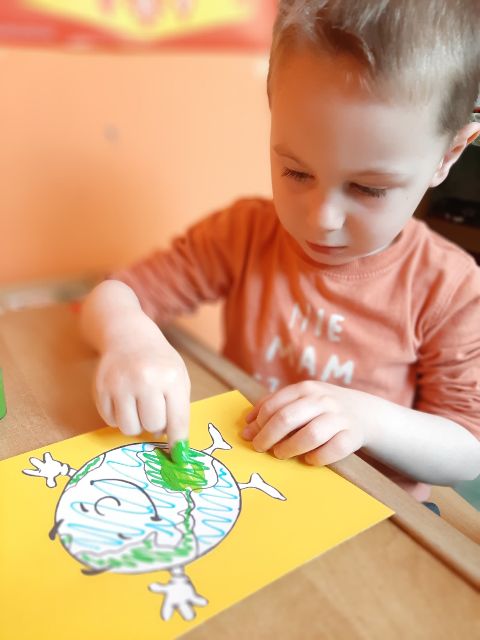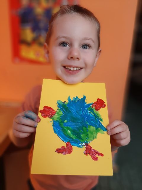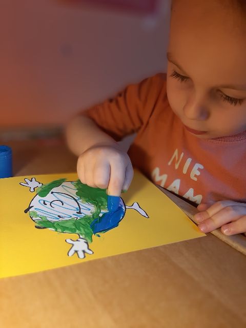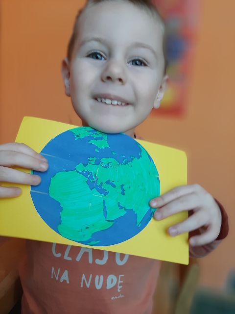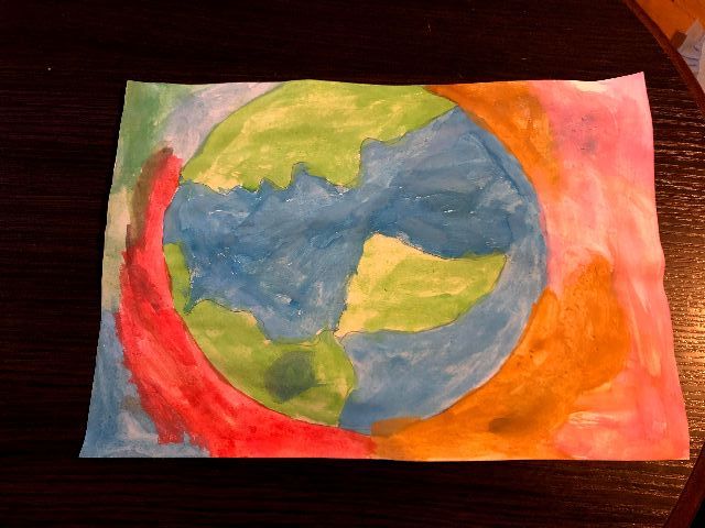 Zosia wykonała piękna planetę Ziemię w pastelowych barwach