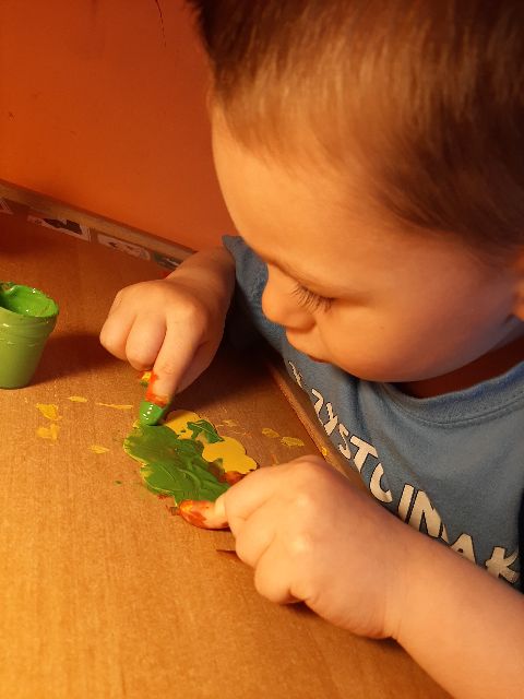 A tu już Jaś prezentuje się podczas klasycznego malowania farbami