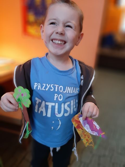 Radość Jasia po ukończonym ćwiczeniu