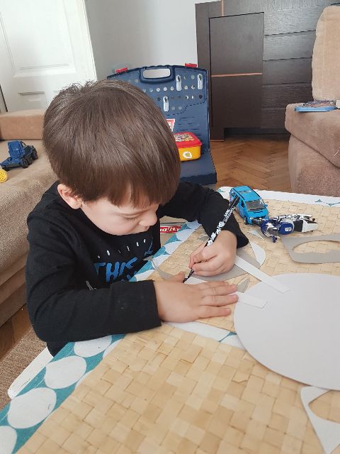 Jaś podczas wykonywania szlaczków