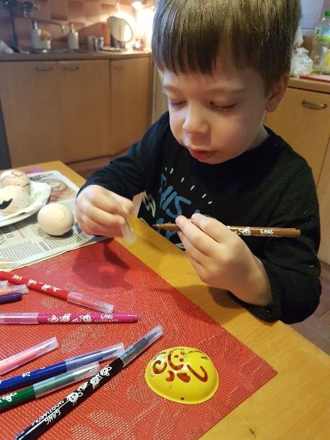 Jaś najpierw rozplanował kolory swojej pisanki