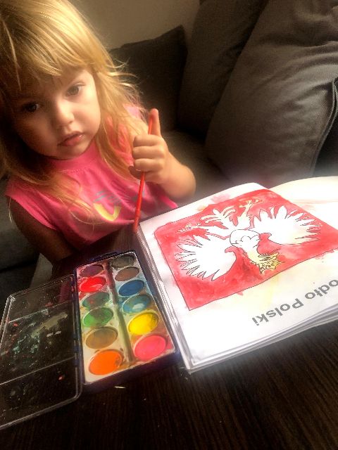 Godło Polski już prawie gotowe - Zosia podczas malowania