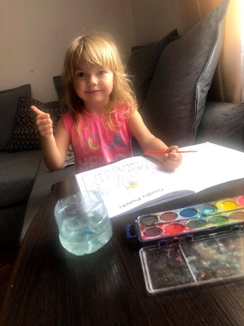 Zosia podczas akwarelowych kolorowań zabytków i symboli Polski