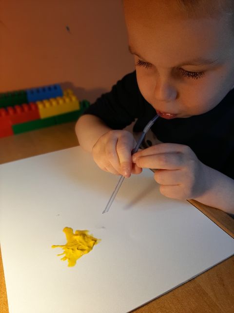 Malować to Jaś lubi :) szczególnie techniką rozdmuchiwania farb przez słomkę