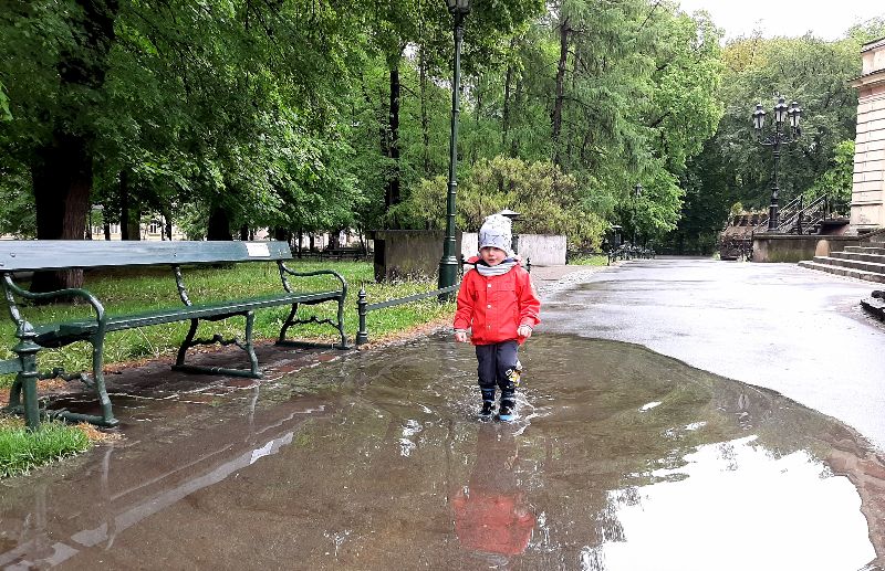 Podobno w czasie deszczu dzieci się nudzą...Jaś lubi kałuże ;)