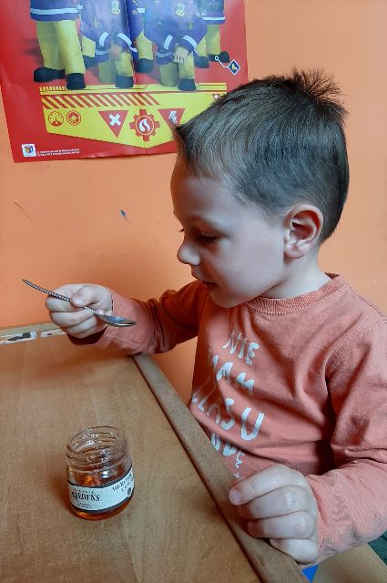 Czym miód pachnie? - sprawdza Jaś