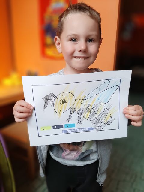 Jaś pokolorował pszczołę
