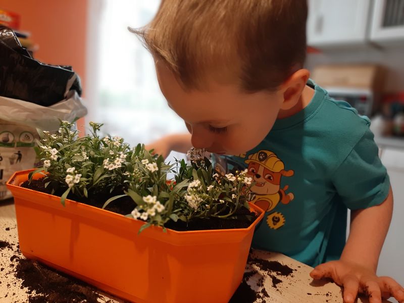 Ciekawe jak pachną kwiatki zasadzone przez Jasia?