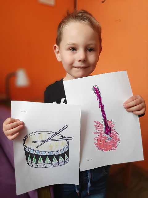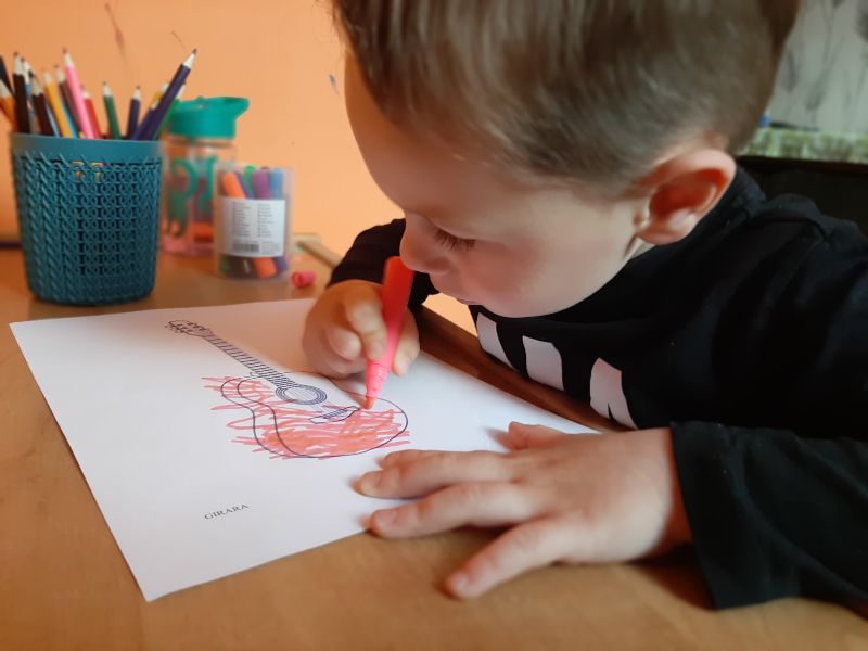 Kolorowanie gitary - pracuje Jaś