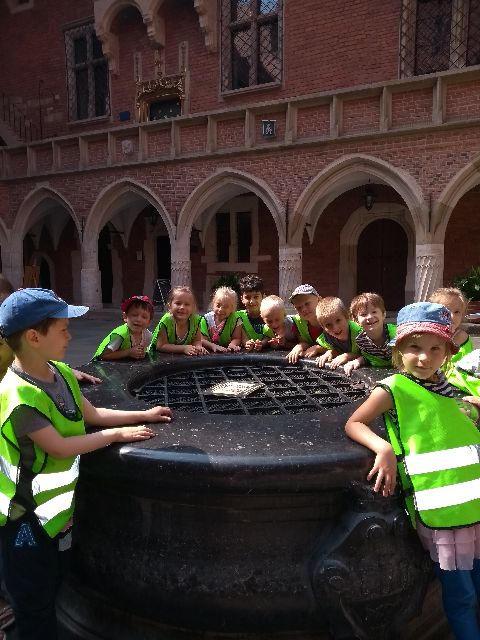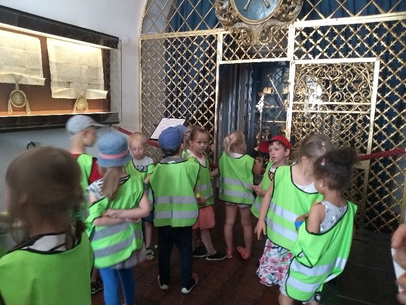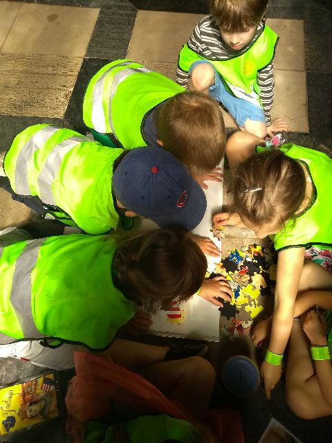 Grupa 3 bierze udział w grze terenowej "Poszukiwacze skarbów" w Muzeum UJ Collegium Maius